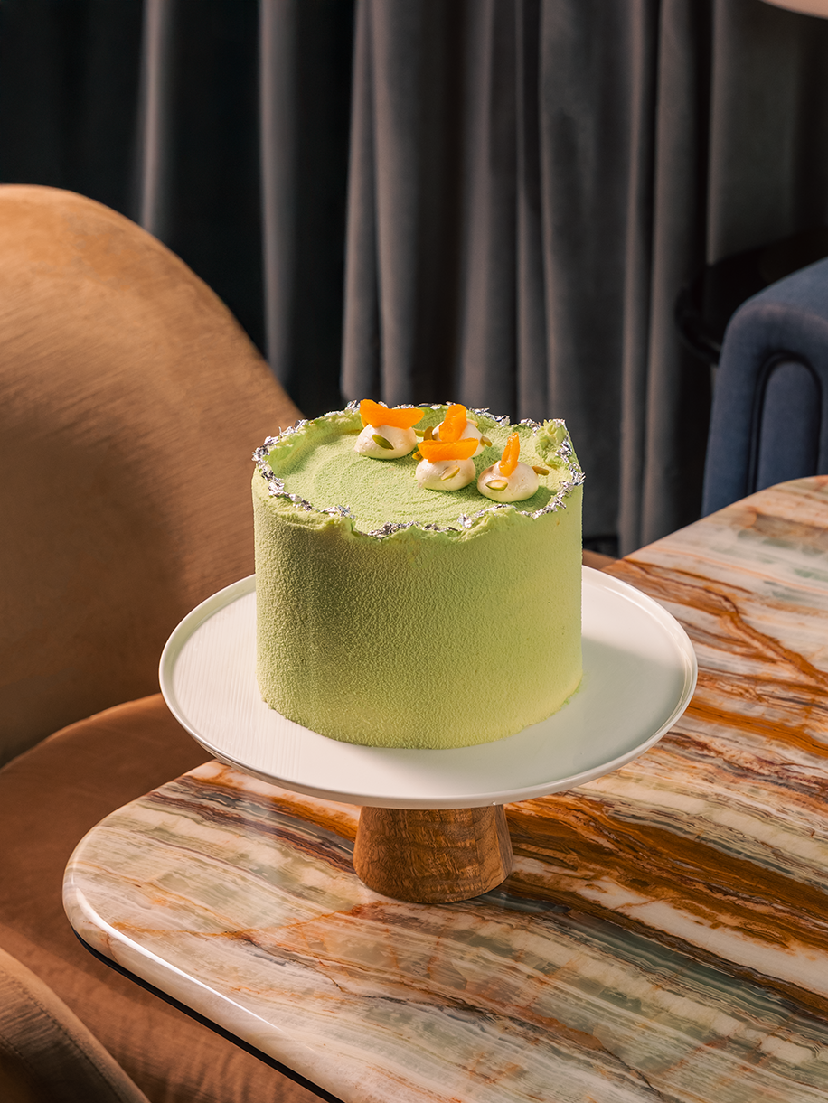 Toasted pistachios meet the brightness of tangy berries in this nutty, fruity composition. A cake with layers of complexity.