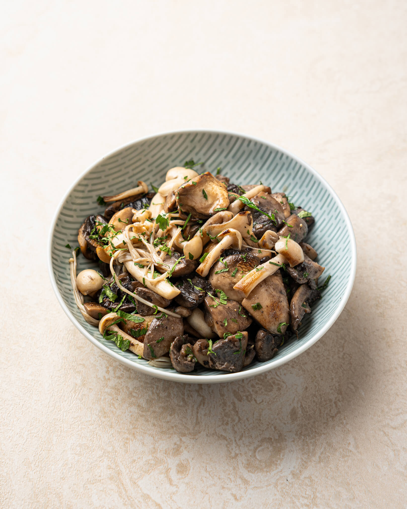 Buttery mushrooms sautéed with herbs and garlic. Kcal 100
